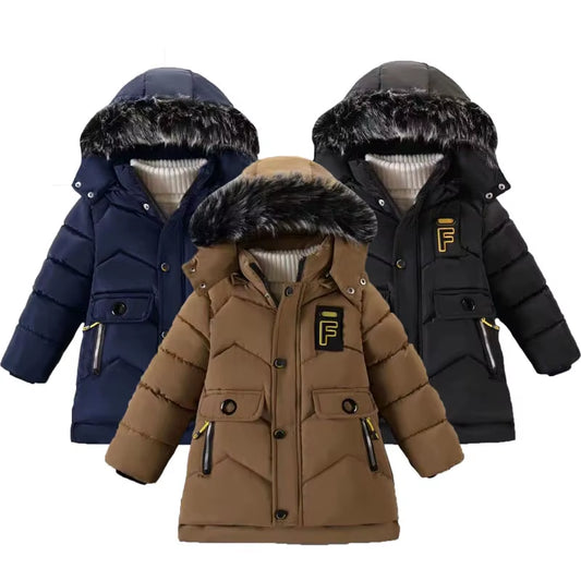 Winter New Boys Jacket Solid Color Letter Printing Thicken Keep Warm Hooded Coat for 3-10Y Kids Fashion down Cotton Snowsuit